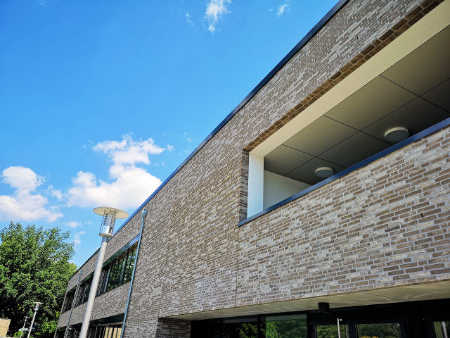 Zusätzlich haben wir 1.100 m² Innenmauerwerk und abschließend die Fassade mit rund 1.200 m² Verblendmauerwerk mit eigenem Personal erstellt.
